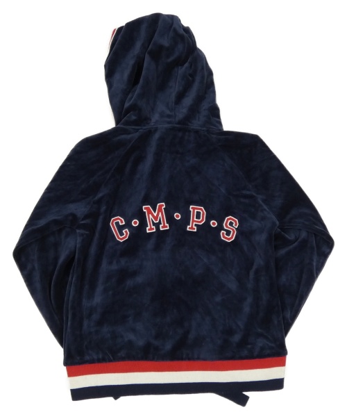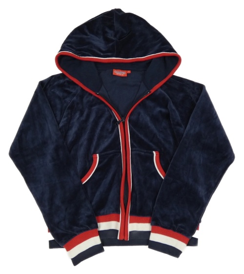 Tmavomodrá sametová propínací mikina s pruhy a kapucí Campus