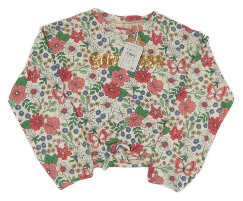 Nové - smetanová crop mikina s kytičkami a motýlky a zlatým nápisem a uzlem Sfera