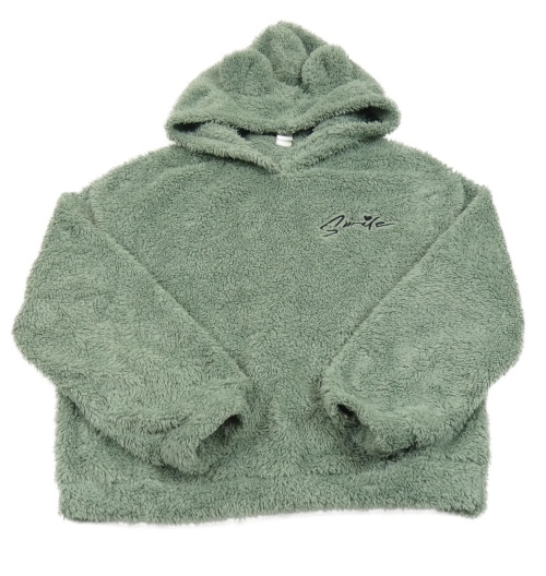 Zelenošedá chlupatá mikina s nápisem a kapucí Shein
