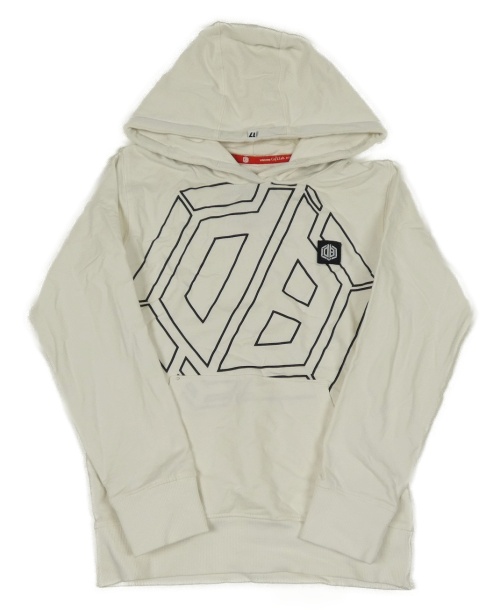 Bílá mikina s písmenky a nášivkou a kapsou a kapucí Daley Blind