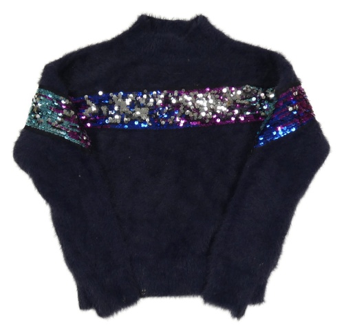 Tmavomodrý chlupatý svetrový rolák s flitry PRIMARK