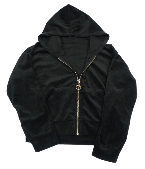 Černá sametová crop propínací mikian s kapucí
