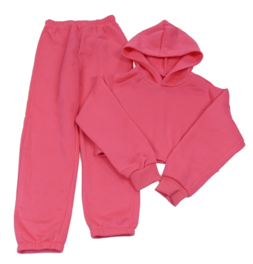 Nové - 2set - Růžová crop mikina s kapucí + tepláky Shein
