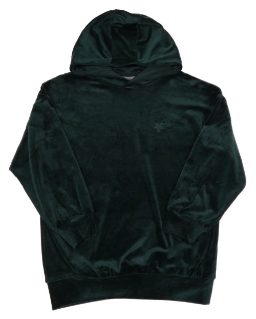 Tmavosmaragdová plyšová oversize dlouhá mikina s hvězdičkou a kapucí DESTINATION