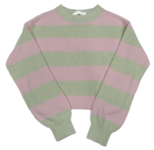 Světleolivovo/růžový pruhovaný žebrovaný pletený oversize crop svetr H&M