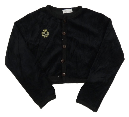 Černá sametová propínací crop mikina s výšivkou Dinky