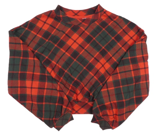 Červeno-smaragdovo-černá károvaná oversize crop mikina H&M