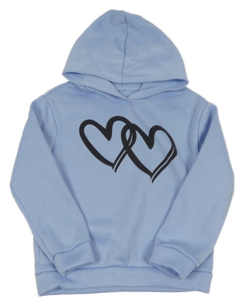 Světlemodrá teplá mikina se srdíčky a kapucí
