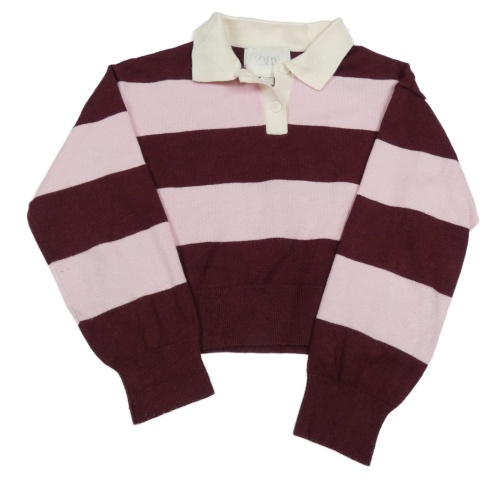 Vínovo-růžový pruhovaný polo svetr Zara