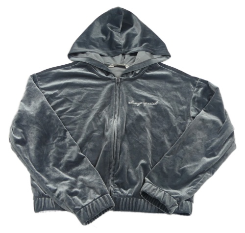 Tmavošedá lesklá sametová propínací crop mikina s nápisem a kapucí H&M