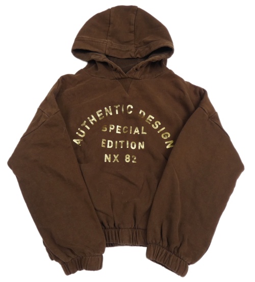 Tmavohnědá oversize crop mikina se zlatými nápisy a kapucí Next