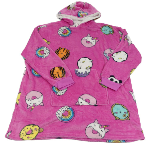Růžová plyšová oversize mikina s donuty a kapucí Primark 11-15let