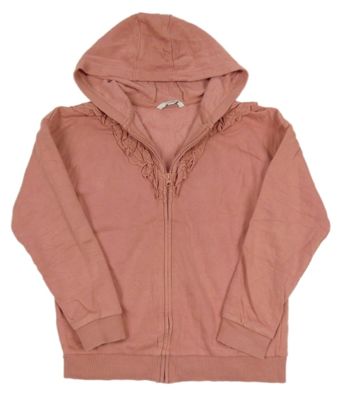 Skořicová propínací mikina s volánky s madeirou a kapucí George