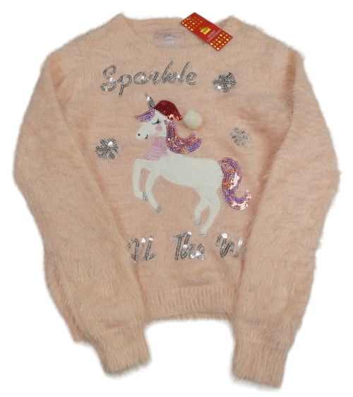 Nové -Světlerůžový chlupatý svetr s jednorožcem a flitry Primark