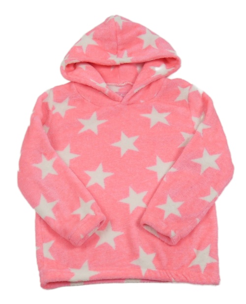 Neonově růžová plyšová mikina s hvězdami a kapucí