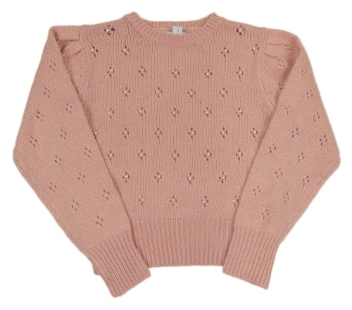 Růžový vzorovaný crop svetr s perlami Primark
