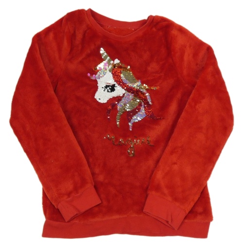 Červená chlupatá mikina s překlápěcími flitry H&M