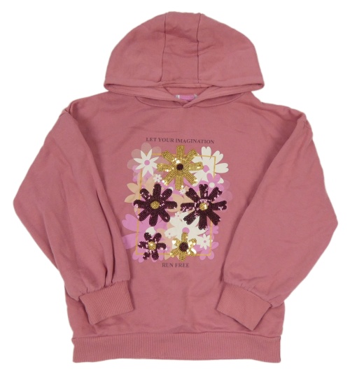 Starorůžová mikina s květy a flitry a kapucí PRIMARK