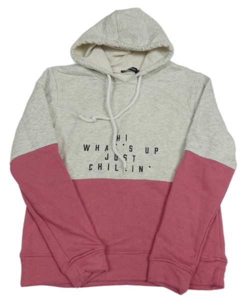 Šedo-růžová mikina s nápisem a kapucí