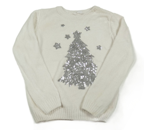 Bílý žinylkový svetr se stromkem z flitrů Primark