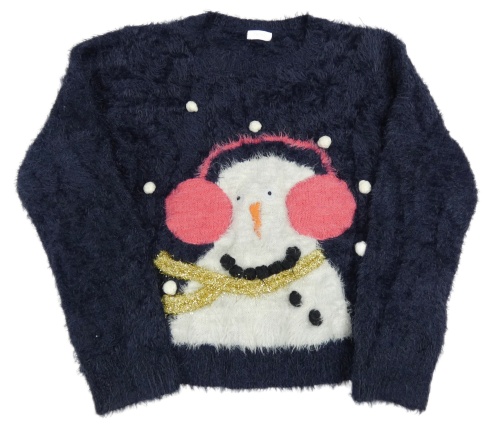 Tmavomodrý chlupatý svetr se sněhulákem Next