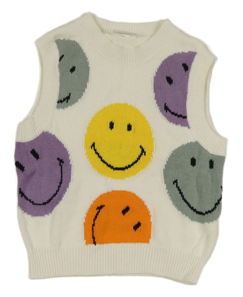 Bílá pletená crop vesta s barevnými smajlíky H&M