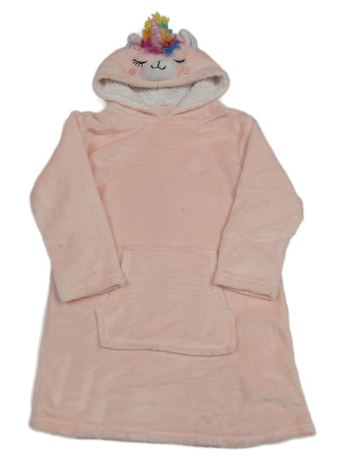 Světlerůžová chlupatá oversize mikina s kapucí - jednorožec