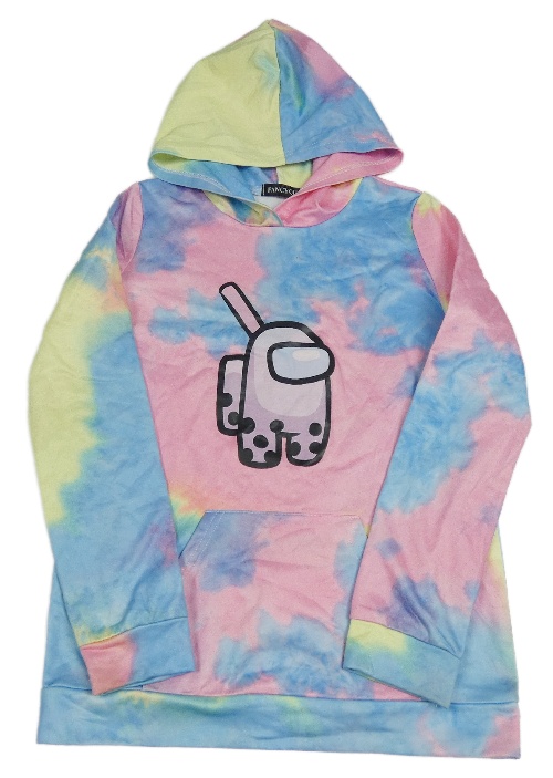 Modro-růžovo-žlutá batikovaná sportovní mikina s Among Us a kapsou a kapucí