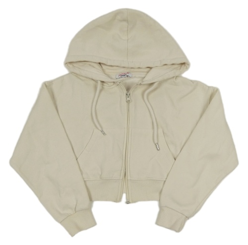 Smetanová propínací crop mikina s kapucí