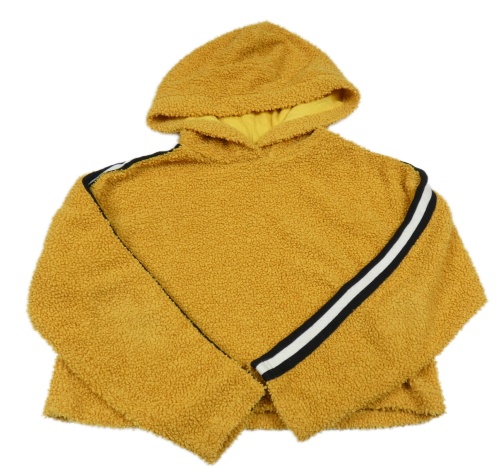Okrová huňatá crop mikina s pruhy a kapucí New Look