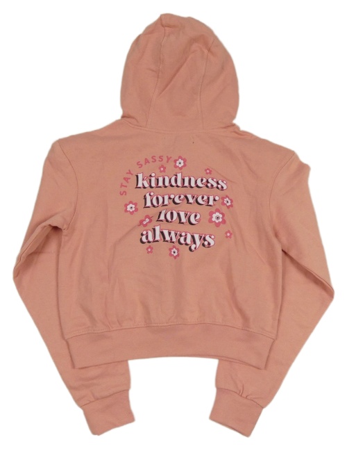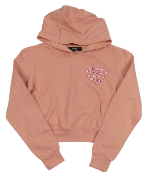 Světlerůžová crop mikina s nápisem a kapucí