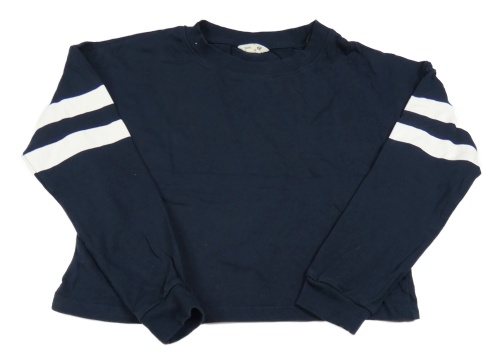 Tmavomodrá oversize crop mikina s bílými pruhy H&M