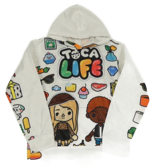 Bílá mikina s obrázky a kapucí - TocaBoca
