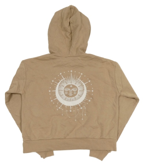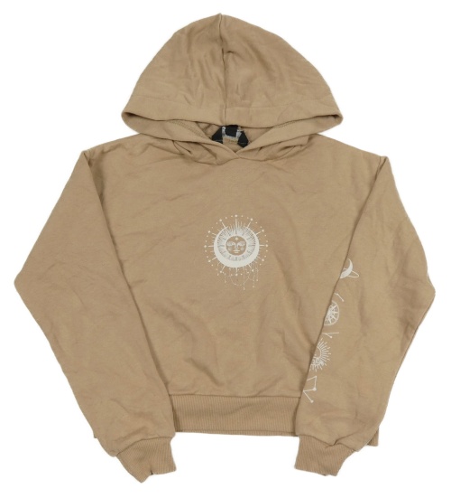Béžová crop mikina se sluncem a kapucí New Look