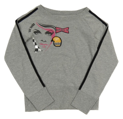Šedá melírovaná mikina s obličejem a nášivkami a pruhy teddy smith
