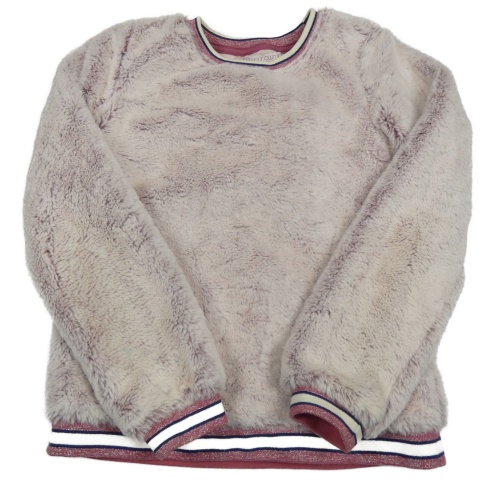 Vínovo-bílá melírovaná kožešinová podšitá mikina Pocopiano