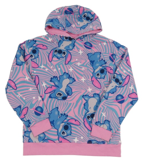 Růžovo-modrá vzorovaná mikina se Stitchem a kapucí Primark