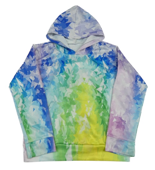 Bílo-lila-modro-zelená vzorovaná mikina s kapucí