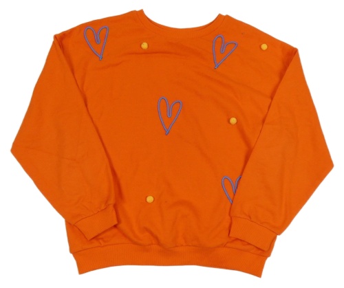 Oranžová mikina s bambulkami a srdíčky Tu