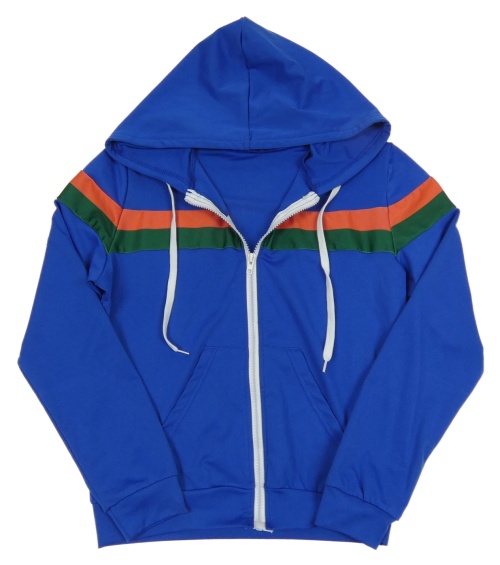 Safírová propínací sportovní mikina s pruhy a kapucí