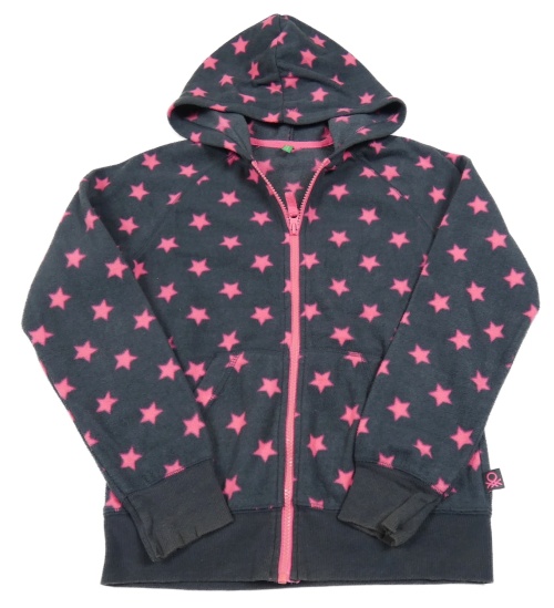 Tmavošedá fleecová propínací mikina s hvězdami a kapucí Benetton