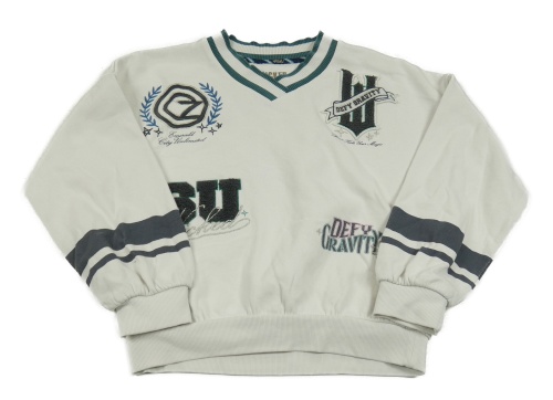 Bílo-šalvějová oversize mikina s písmenky a nápisy a pruhy M&S