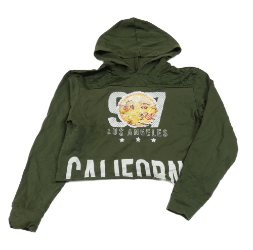 Khaki crop mikina se smajlíkem z překlápěcích flitrů a kapucí Primark