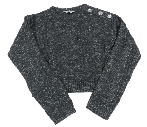 Tmavošedo-stříbrný melírovaný vzorovaný oversize crop svetr s knoflíky PRIMARK