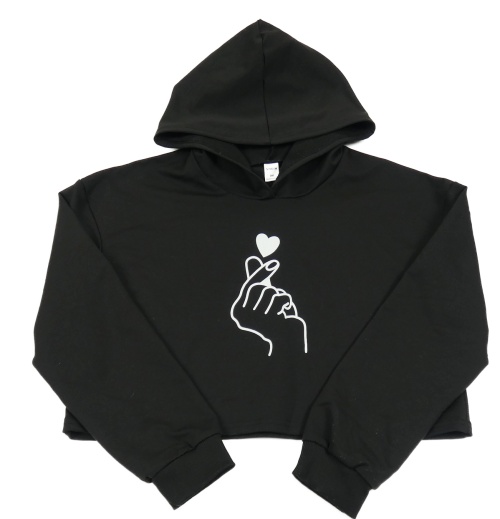 Černá sportovní crop mikina s rukou a kapucí Shein