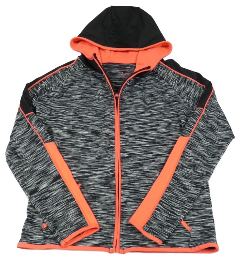Černo-bílo-neonově růžová melírovaná propínací sportovní mikina s kapucí Yd.