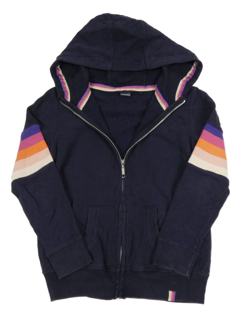 Tmavomodrá propínací mikina s úpletovými pruhy na rukávu a kapucí Next