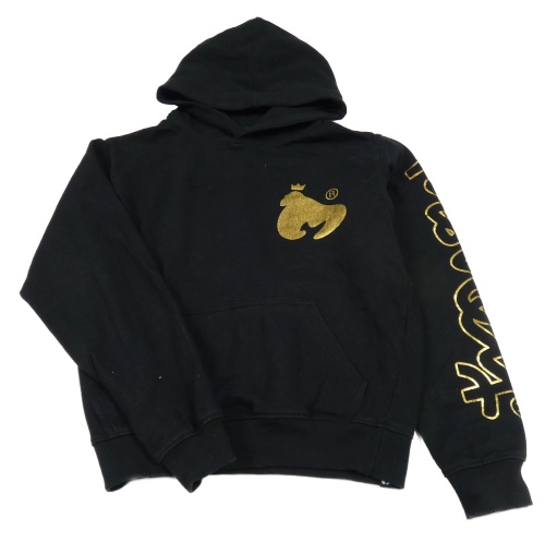 Černá mikina se zlatou gorilou a kapsou a kapucí Money