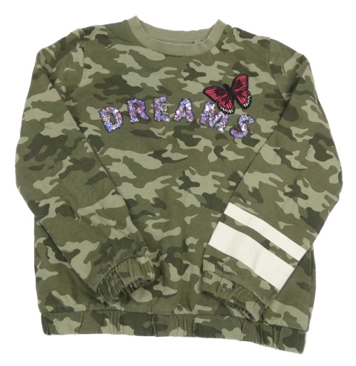 Khaki army mikina s nápisem s flitry a motýlkem a pruhy