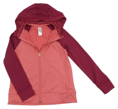 Lososovo-vínová sportovní propínací funkční mikina s kapucí Decathlon